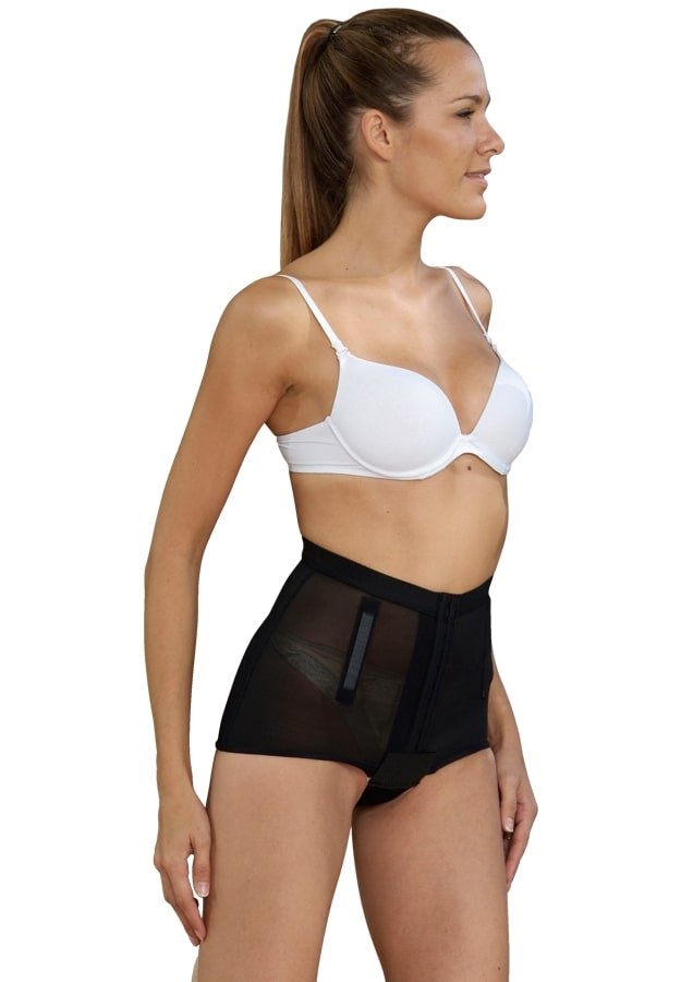 The Low Waistband, with central opening, in the plastic range, is suitable for people using abdominal plasty to contain post-operative edema.